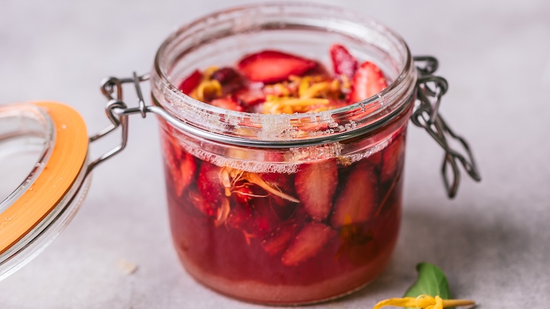 Laisser reposer 5 à 7 jours à température ambiante tout en remuant 1 fois par jour pour dissoudre le sucre (en secouant le bocal par exemple).