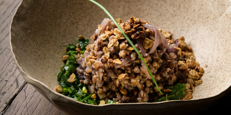 [RECETTE VÉGÉTALE] Risotto de sarrasin aux oignons, sauce chimichurri et granola salé par Chacha